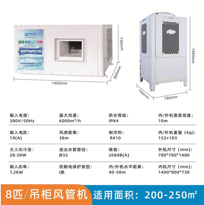 8匹吊掛式管道機(jī)蒸發(fā)冷省電空調(diào)