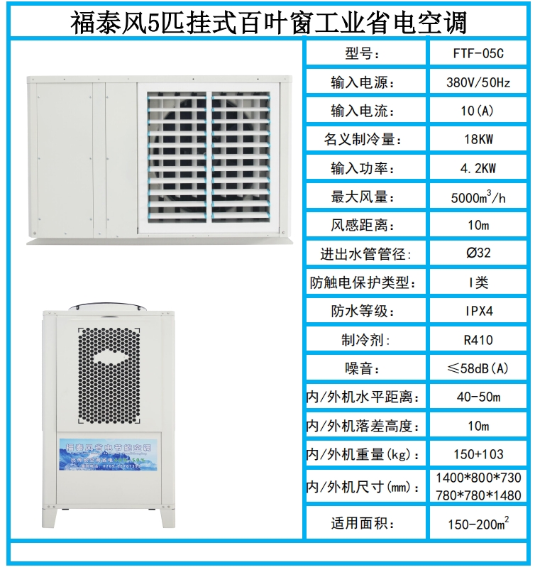 5匹掛式百葉窗工業(yè)省電空調(diào)參數(shù)