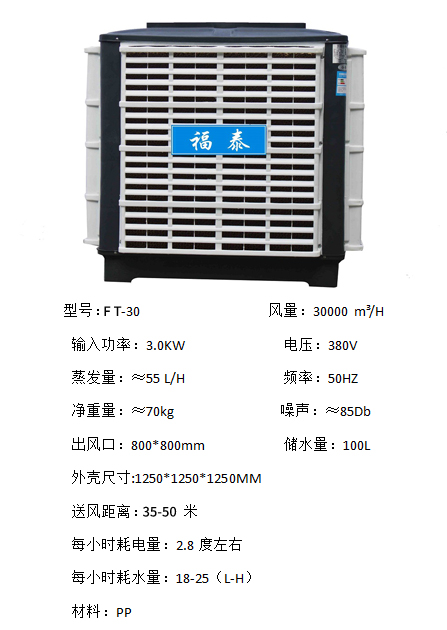 福泰環保空調性能穩定在越炎熱的天氣下降溫的效果越好。適用于開敞式及半開敞式環境,能夠直接輸送自然風及輸送降溫后的涼風。室外新鮮空氣經福泰蒸發式冷氣機過濾、降溫后向室內源源不斷的大量輸送,將室內帶有異味、粉塵和混濁悶熱的空氣排出室外,同時兼顧換氣降溫及增加空氣含氧量等多種效果。