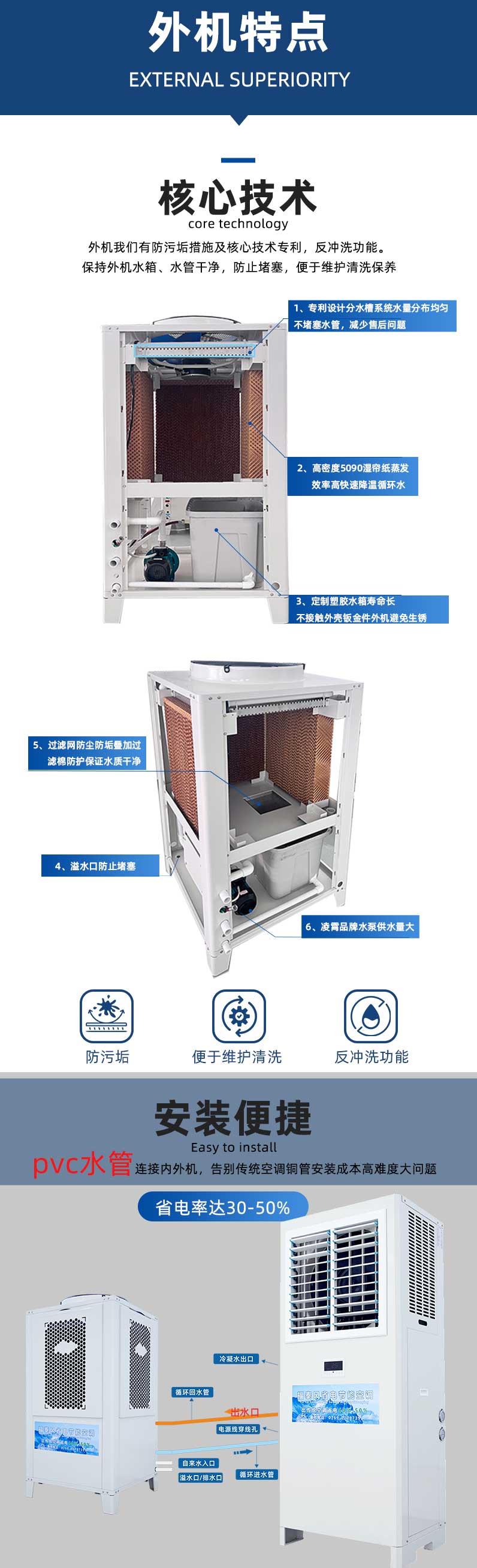 • 產品類型通常采用蒸發冷技術,結合了水冷、風冷、蒸發冷相結合的工作原理